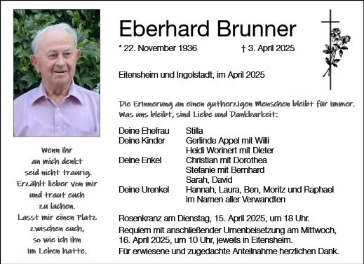 wir wünschen Ihnen von Herzen viel Kraft, dass Sie Menschen um sich haben, die Ihnen in dieser schweren Zeit beistehen und Halt geben. Zusätzlich können Sie auf dieser Gedenkseite Erinnerungen teilen und so das Andenken gemeinsam wachhalten.