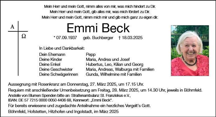 wir wünschen Ihnen von Herzen viel Kraft, dass Sie Menschen um sich haben, die Ihnen in dieser schweren Zeit beistehen und Halt geben. Zusätzlich können Sie auf dieser Gedenkseite Erinnerungen teilen und so das Andenken gemeinsam wachhalten.