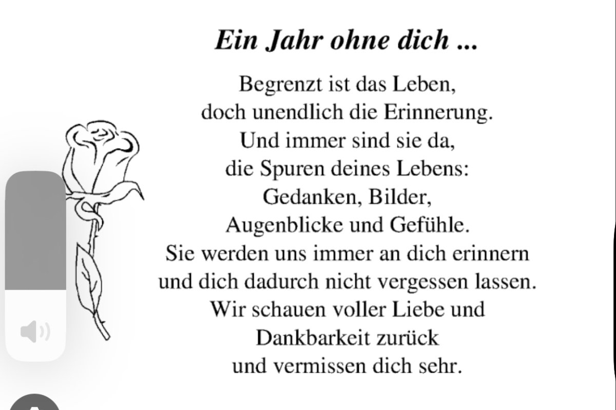 Wir denken heute ganz besonders an dich denn seit einem Jahr fehlst du uns sehr!! Wir hoffen dass es dir gut geht im Himmelreich! Wir haben dich lieb und vermissen dich!