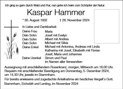 Beerdigung, Stammham