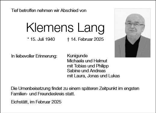 wir wünschen Ihnen von Herzen viel Kraft, dass Sie Menschen um sich haben, die Ihnen in dieser schweren Zeit beistehen und Halt geben. Zusätzlich können Sie auf dieser Gedenkseite Erinnerungen teilen und so das Andenken gemeinsam wachhalten.