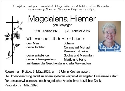 Magdalena Hiemer geb. Mayinger