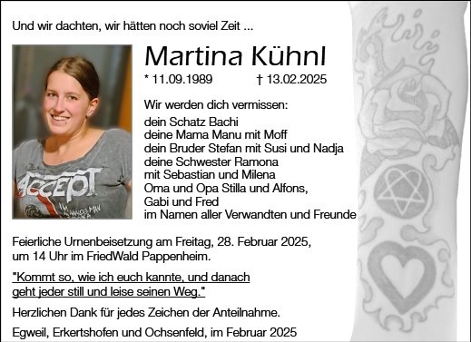 in diesen Tagen fühlen wir mit Ihnen und wünschen Ihnen von Herzen, dass Sie aus den glücklichen Erinnerungen Kraft schöpfen, um positiv in die Zukunft zu gehen. Diese Gedenkseite möge Ihnen dabei helfen, Ihre Trauer zu teilen und das Andenken gemeinsam wachzuhalten.